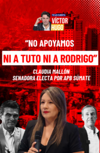 Claudia Mallón aclaró que desde su frente no apoyan ni a Tuto Quiroga ni a Rodrigo Paz, marcando distancia en el escenario político rumbo a la segunda vuelta.