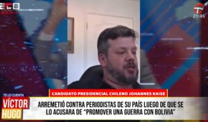 CANDIDATO PRESIDENCIAL CHILENO JOHANNES KAISE: ARREMETIO CONTRA DOS PERIODISTAS DE SU PAÍS LUEGO DE QUE EN PROGRAMAS DE TELEVISIÓN SE LO ACUSARA DE “PROMOVER UNA GUERRA CON BOLIVIA”.