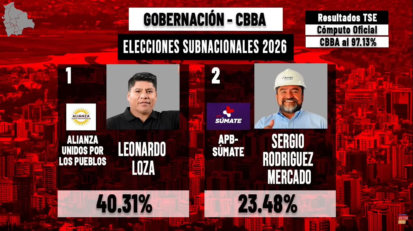 LOZA, GOBERNADOR EN COCHABAMBA. ASÍ QUEDAN OFICIALMENTE LOS RESULTADOS DE LAS ELECCIONES.