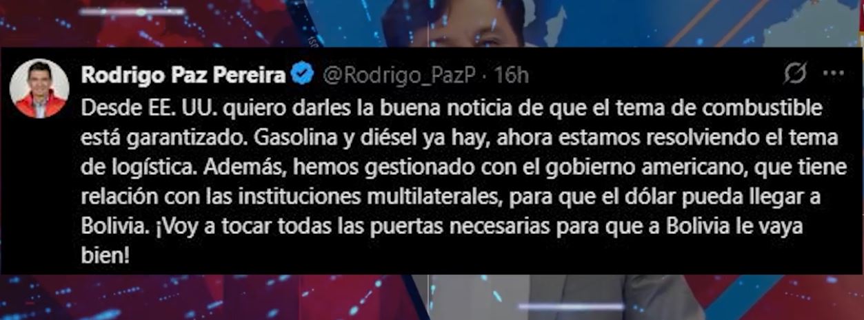 RODRIGO PAZ GARANTIZA DIÉSEL Y COMBUSTIBLE PARA EL PAÍS