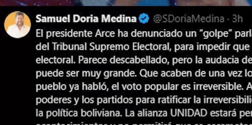 SAMUEL DORIA MEDINA:»EL PRESIDENTE ARCE HA DENUNCIADO UN “GOLPE” PARLAMENTARIO»…